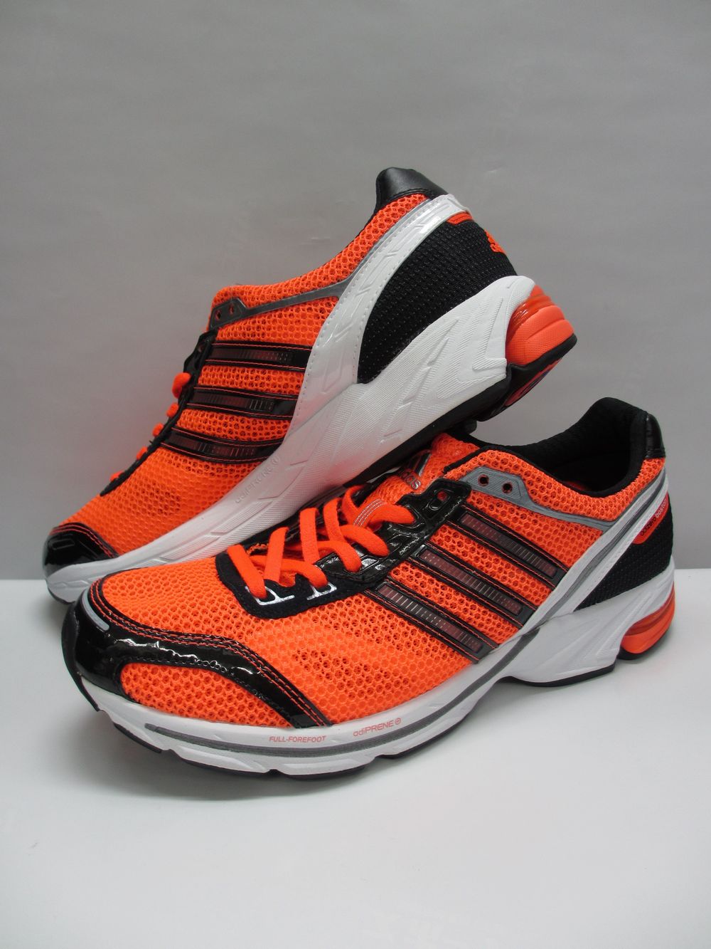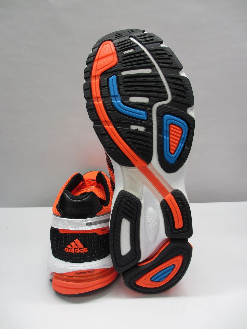 adidas【アディダス】から軽量ランニングシューズが登場!! 1km6分ペースで走るランナーのクッション性に優れたレース&トレーニング兼用モデル。 着地時にかかとが動くことでオーバープロネーション(足が過度に内側へ倒れこむ現象)を軽減するFORMOTION(フォーモーション)をかかと部分に搭載。 これによって着地をサポート=安定感の増大、ひざへの負担軽減します。 高反発弾性素材「アディプリーンプラス」を前足部全面に搭載し、蹴り出しを強力に推進。 また、耐久性とクッション性を兼備する「ブローンラバー」をアウトソールの前足部に搭載。 高いクッション性を実現した軽量モデルです!!