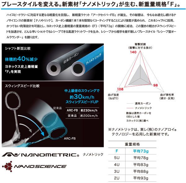 ヨネックス バドミントンラケット アークセイバーFB 品番:ARC-FB カラー:ソニックブルー(627) サイズ:F(平均73g)5・6、5U5・6