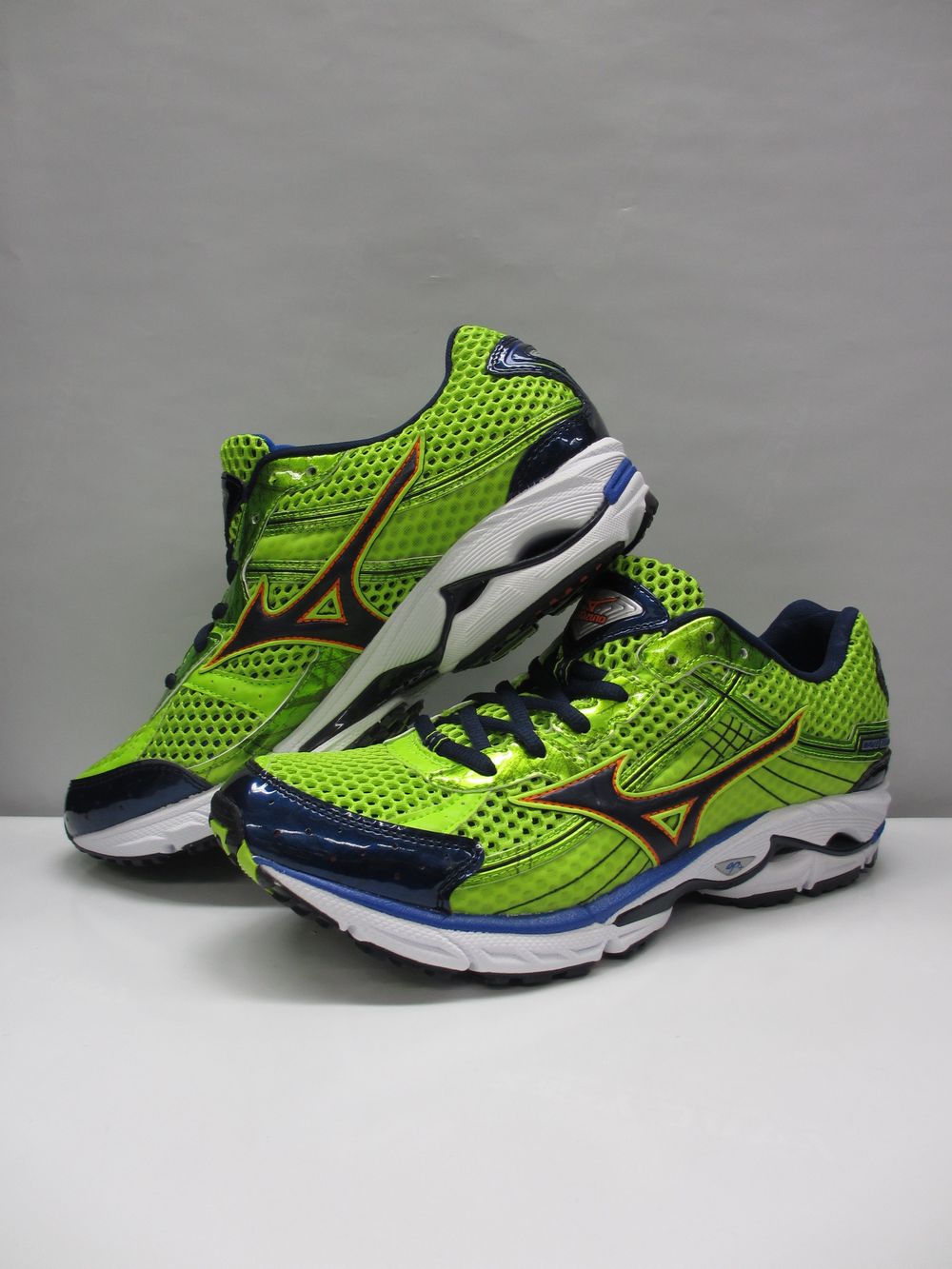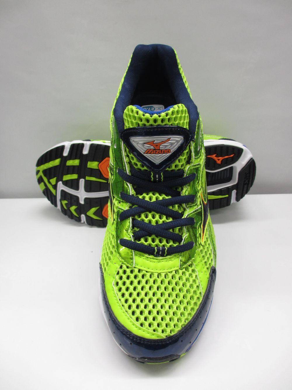 ミズノ ランニングシューズ ウエーブ ライダー 15 品番:8KN20206 カラー:11 ライム×ネイビー サイズ:25.0cm〜28.5cm(幅/2E)