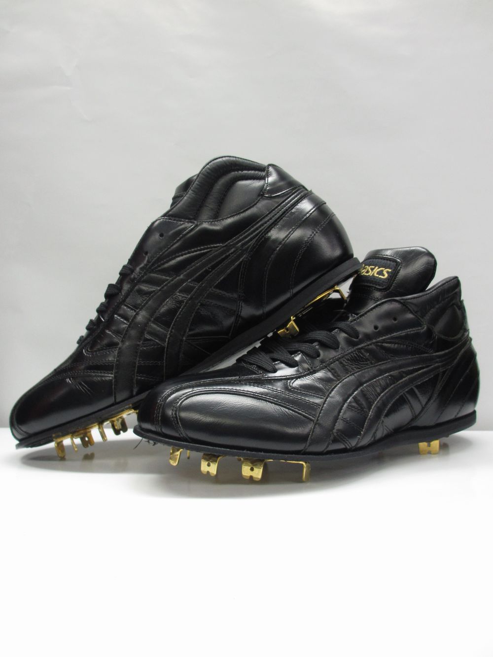 素材 アッパー:天然皮革製(シルキーカーフ)+人工皮革製 アウターソール:天然皮革底(タフロン?ソール) スパイク:金属製・取替式