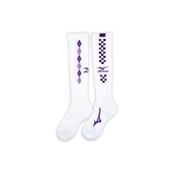 ミズノ 2足組ハイソックス 品番:59UF322 カラー:78 ホワイト×パープル サイズ:21〜23cm、23〜25cm 素材:ナイロン・ポリエステル・その他