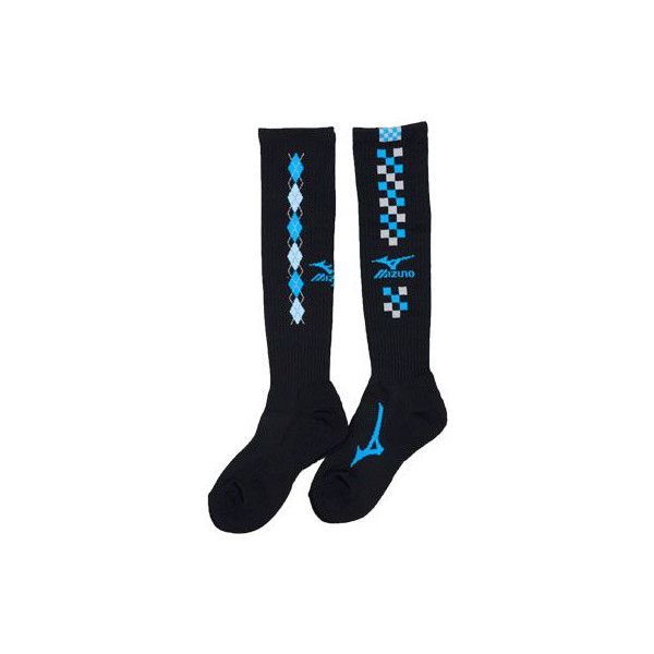 ミズノ 2足組ハイソックス 品番:59UF322 カラー:92 ブラック×ターコイズ サイズ:21〜23cm、23〜25cm 素材:ナイロン・ポリエステル・その他