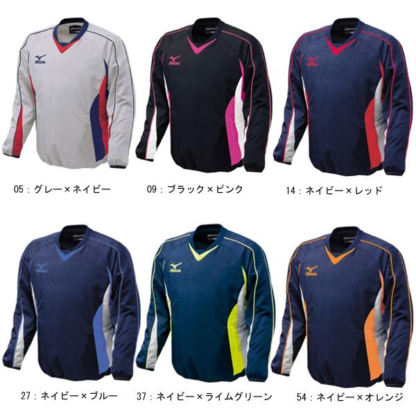 ミズノ (ダイアモンドヒーロー) 長袖Vネックジャケット 品番:52WW732 カラー 05 グレーXネイビー 09 ブラックXピンク 14 ネイビーXレッド 27 ネイビーXブルー 37 ネイビーXライムグリーン 54 ネイビーXオレンジ