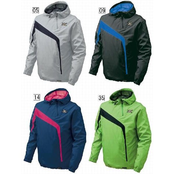 ミズノ グローバルエリート 長袖ハーフジップジャケット 品番:52WW866 カラー 05 グレー×ブラック 09 ブラック×ブルー 14 ネイビー×ピンク 35 グリーン×ブラック