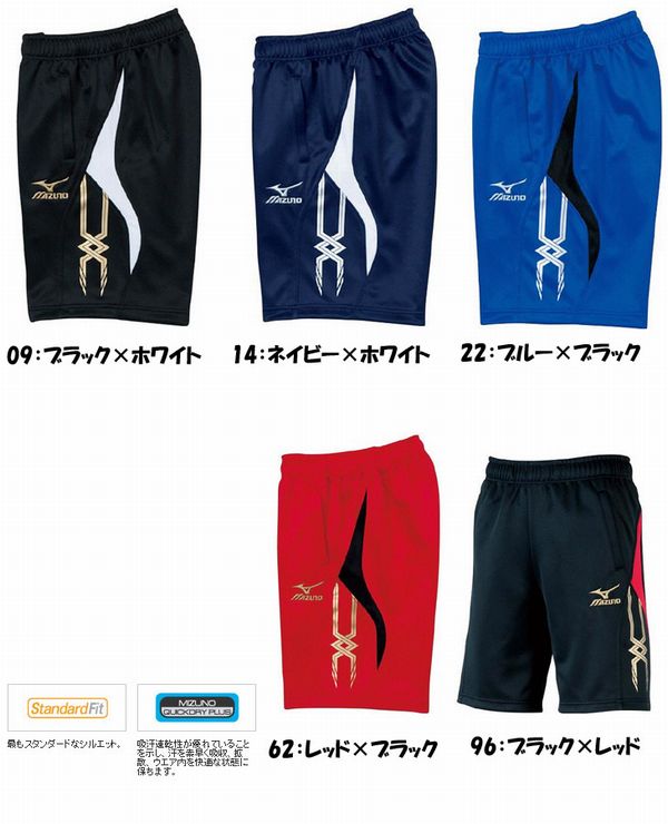 ミズノ ジュニアウォームアップハーフパンツ 品番:A35EP200 カラー 09 ブラック×ホワイト 14 ネイビー×ホワイト 22 ブルー×ブラック 62 レッド×ブラック 96 ブラック×レッド