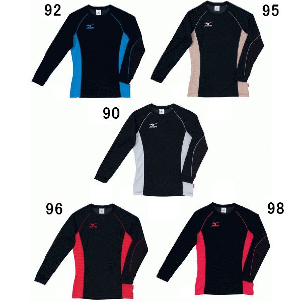 ミズノ レディース長袖プラクティスシャツ 品番:59SW260 カラー 90 ブラック×シルバーグレー 92 ブラック×ターコイズ 95 ブラック×ゴールド 96 ブラック×レッド 98 ブラック×マゼンタ
