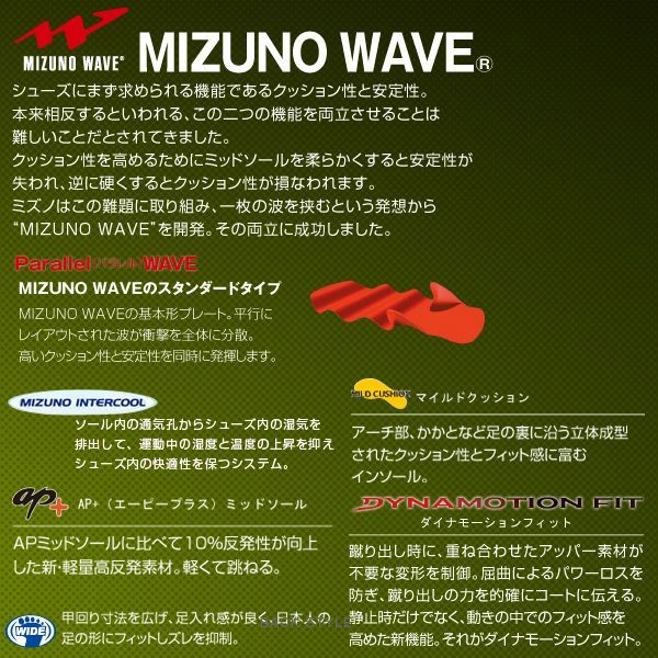 特徴・機能 WAVE FANG シリーズ ・安定&ハイグリップがコンセプトのモデル。 ・AP+が跳ねるような動きを、XGラバーのフラットリングソールが素早いフットワークを可能にしてくれます。 ・シリアスプレーヤーに向けたシリーズです。 ・フィット×軽量のVSシリーズが、フィット感にさらに磨きをかけてリニューアル。