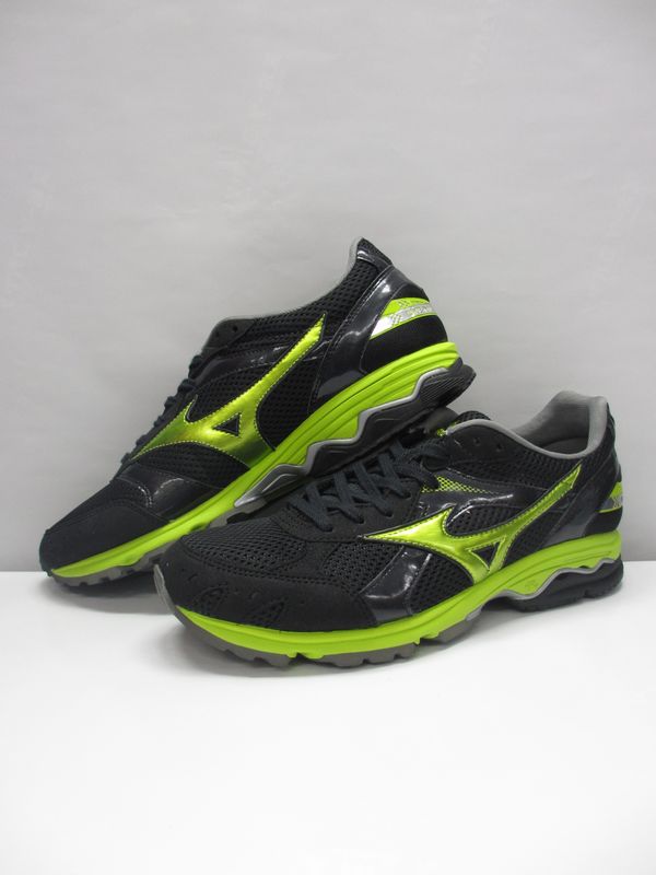 ミズノ ランニングシューズ ウエーブアミュレット3 ワイド 品番:8KS22735 カラー:35 ブラック×ライム サイズ:24.5〜28.5cm(幅/3E)