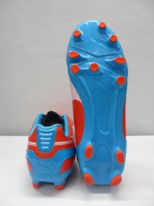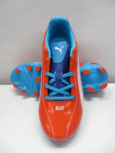 プーマ ジュニアサッカースパイク エヴォスピード 5 Jr 品番:102595 カラー:06 オレンジドットコム/ホワイト/ハワイアンオーシャン サイズ:20.0~24.0cm