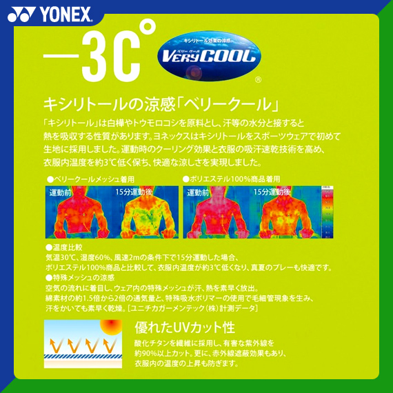 機能 ベリークールα(アルファ) ・3つの機能が衣服内の環境をコントロールし、汗によるストレスや疲労を抑える ・選手の衣服内の環境は、体温の上昇とともに発汗し、刻一刻と変化しています。 ・それらの衣服内環境を想定し、3つの機能が運動開始時からピーク時までの衣服内環境をコントロールし、選手をサポートします。