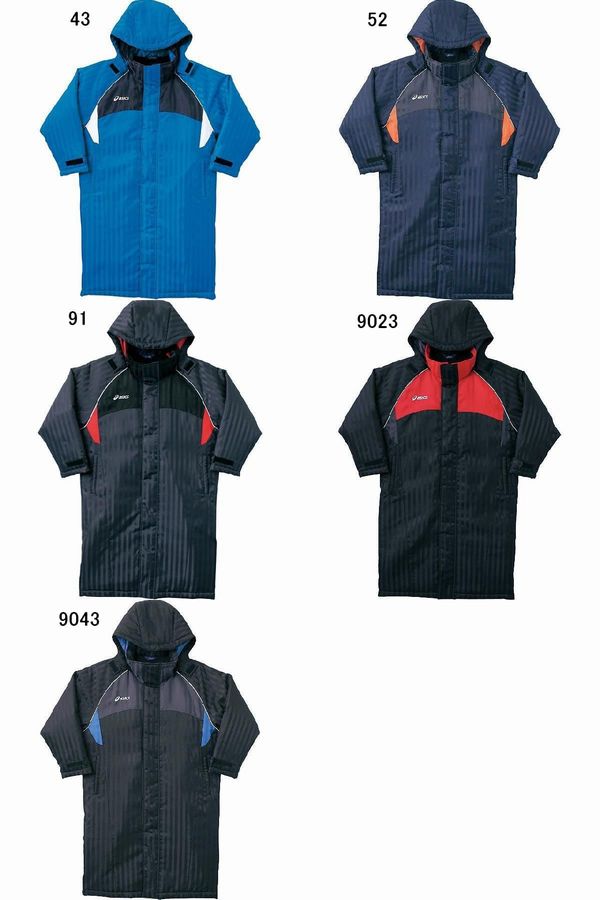 アシックス(ASICS)ジュニア用ロングコート 品番:XAJ53F カラー 43 コバルトブルー 52 ダークネイビー 91 カーボン 9023 ブラック×レッド 9043 ブラック×コバルトブルー