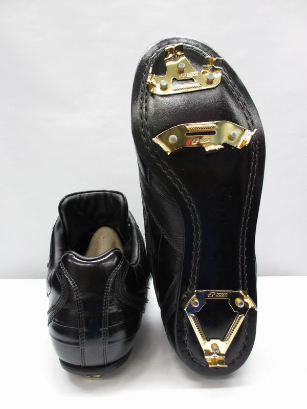 機能 スーパーナインリベット ・ソールを圧縮した状態で金具を止めるため、使用中の金具の緩みが無く、金具がソールに強力に密着した状態に仕上がります。 ・スパイクの中で釘の頭が浮かず、突き上げ感が少ないのも特徴です。