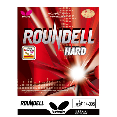 バタフライ卓球ラバー 破壊力が増大した『ラウンデル』 『ラウンデル』のシートに硬めのスポンジを組み合わせることで、 さらに威力のある打球を可能したのが『ラウンデル・ハード』です。