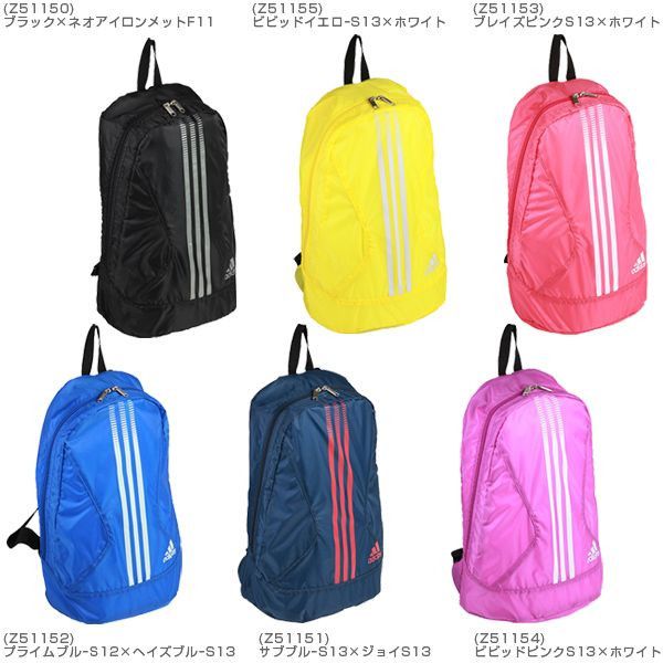 アディダス(ADIDAS) ポケッタブルナップバッグ 品番:DO020 カラー (Z51150) ブラック/ネオアイロンメット (Z51151) サブブルー/ジョイ (Z51152) プライムブルー/ヘイズブルー (Z51153) ブレイズピンク/ホワイト (Z51154) ビビッドピンク/ホワイト (Z51155) ビビッドイエロー/ホワイト