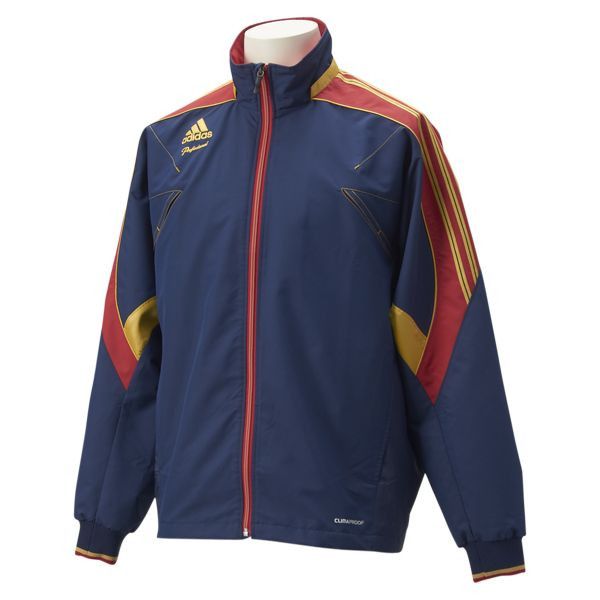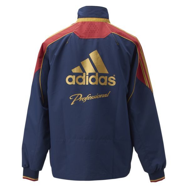 ゴールドの曲線を取り入れ一新した ADIDAS PROFESSIONAL のウィンドジャケット。 脇下にベンチレーションを採用し通気性を高めていると同時に背中にカッティングを設け動きやすくしている。