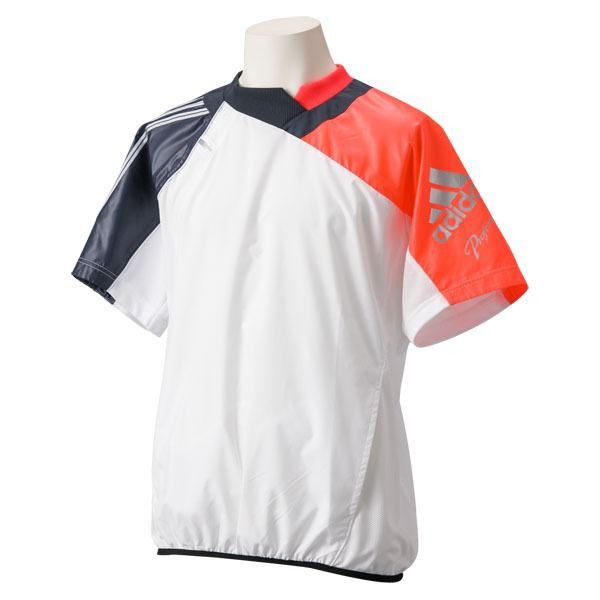adidas Professional RevolutionのVネックウィンドジャケット半袖モデル。 光沢感をアップすることで存在感を強調したデザイン。
