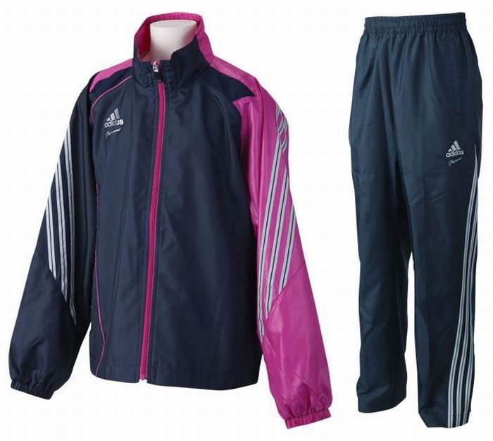 アディダス(adidas) Profesional Revo ジュニア フルジップ長袖ウィンドブレーカー上下セット 品番:ジャケット:WE413 パンツ:WE415 カラー:カレッジネイビー/ビビッドピンク(F44353/F44371) サイズ:120・130・140・150・160