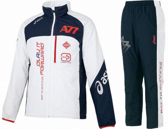 アシックスの新たなデザインブランド「A77」シリーズのNEWモデルの裏起毛のウィンドブレーカー&パンツ上下セットです。