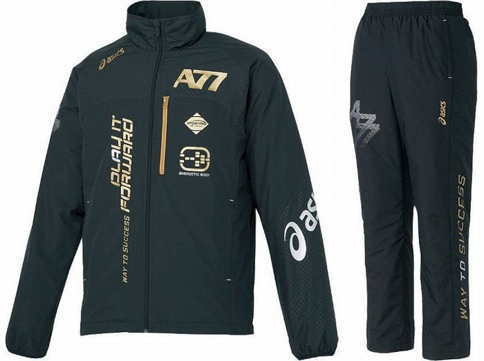 アシックスの新たなデザインブランド「A77」シリーズのNEWモデルの裏起毛のウィンドブレーカー&パンツ上下セットです。