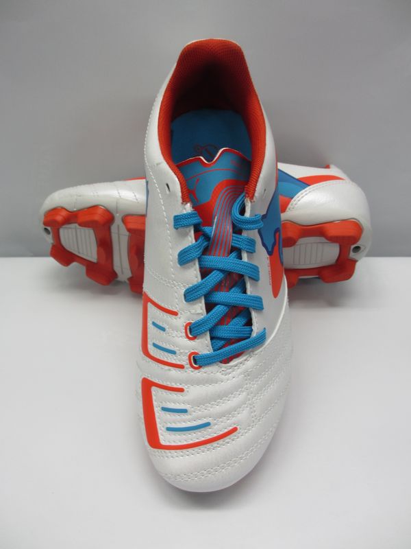プーマ(PUMA) ジュニア サッカースパイク パワーキャット 4 R HG JR 品番:102811 カラー:02 メタリックホワイト×オレンジドットコム×ハワイアンオーシャン サイズ:20.0、21.0〜25.0cm