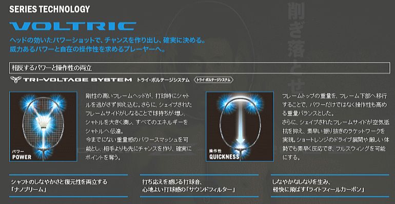 史上最細シャフトとパワーアップした「トライーボルテージシステム」で、スマッシュエネルギー増大。