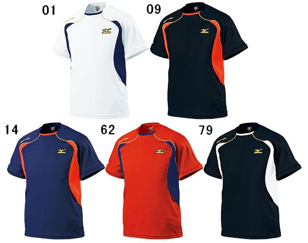 ミズノプロ Tシャツ 品番:52TA910 カラー 01 ホワイト 09 ブラック 14 ネイビー 62 レッド×ネイビー 79 ブラック×ホワイト