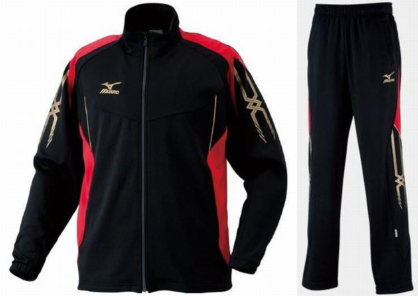 ミズノ(MIZUNO) ウォームアップシャツ・パンツ上下セット 品番:ジャケット:A60SB200、パンツ:A60PE200 カラー:96 ブラック×レッド サイズ:SS・S・M・L・O・XO
