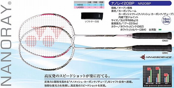 ヨネックス(YONEX) バドミントンラケット ナノレイ20BP 品番:NR20BP カラー:062(ホワイト/ピンク)、284(ホワイト/シルバー) サイズ:3U5