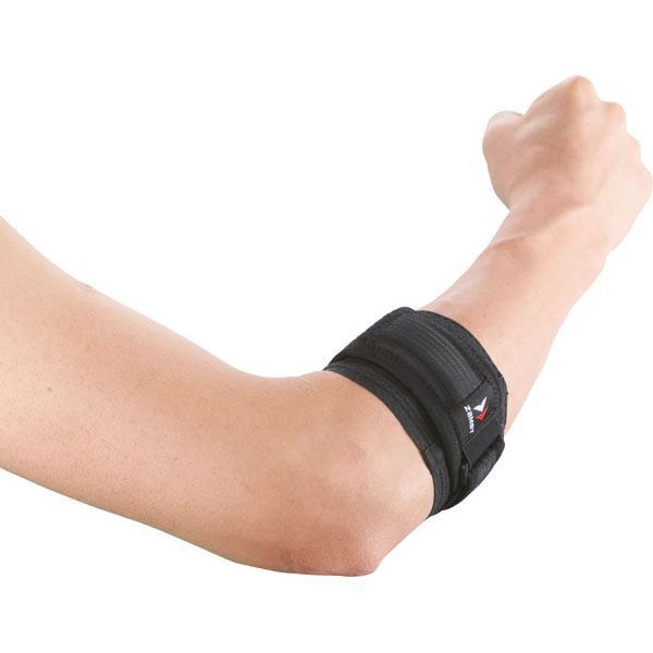 簡単装着の面ファスナー仕様。 エルボーパッドで的確に圧迫し、ヒジの負担を軽減します。