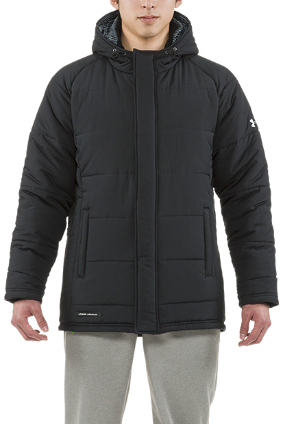 UAファブリックに特殊セラミックプリントを施すことで蓄熱効果を高め、アスリートの身体を冷えから守る。 非常に軽量な中綿を使用。両サイドにポケット。