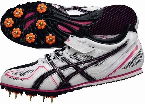 アシックス asics ヒートフラットFR5 オールラウンド用 陸上スパイク オールウェザー 土兼用 品番:TTP791 カラー:0191:ホワイト×エナメルブラック サイズ:22.5〜28.5cm アッパー:人工皮革製(ラッセル構造)、補強=人工皮革 アウターソール:合成底(ウレタン) プレート:合成樹脂性(ナイロン) スパイク:金属製(鉄)アンツーカー用12mm、取り替え式 オールウェザー:土トラック兼用スパイク オールラウンド用:100m〜1500m・ハードル・走幅跳・三段跳・棒高跳 付属品:シューズ袋(中国製)、ハンドル(台湾製)、ピンカバー(中国製) 生産国:ベトナム製