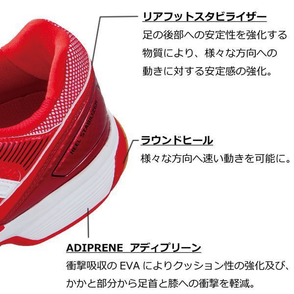 アディダス バドミントンシューズ BT Feather ビーティーフェザー 品番:F32928 カラー:ハイレゾレッド/ランニングホワイト サイズ:23.5〜28.5cm