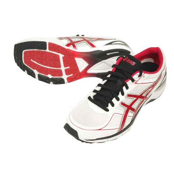 衝撃緩衝性に優れたGELをミッドソールに内蔵。中空カプセルを混入した、軽量で反発性が高いr-GELをかかと部に装着。従来のラバーと同等の軽量性、グリップ性をもちながら、約3倍(当社比)の耐摩耗性を発揮するアウターソール素材。ミッドソールの中足部を補強した構造。運動時にネジレが生じやすい中足部の剛性をアップし、フットワークの安定性を高めます。