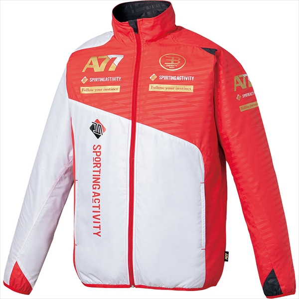 アシックスの新たなデザインブランド「A77」シリーズの2014年秋冬新作。エンボス柄での異素材感がデザインポイントのメッシュウィンドブレーカー。