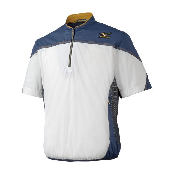 素材:ポリエステル100% 仕様:バックプリントあり(ミズノプロロゴ転写マークゴールド)、両脇ポケットあり(ファスナー付き)、ハーフZIP仕様 原産国:中国製