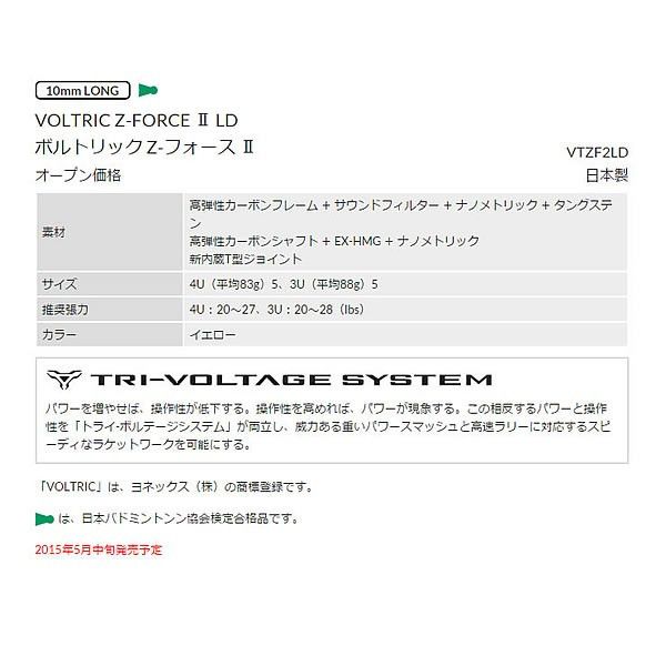 ヨネックス(YONEX) バドミントンラケット ボルトリック ZフォースII LD 品番:VTZF2LD カラー:イエロー(004) サイズ:4U5・3U5