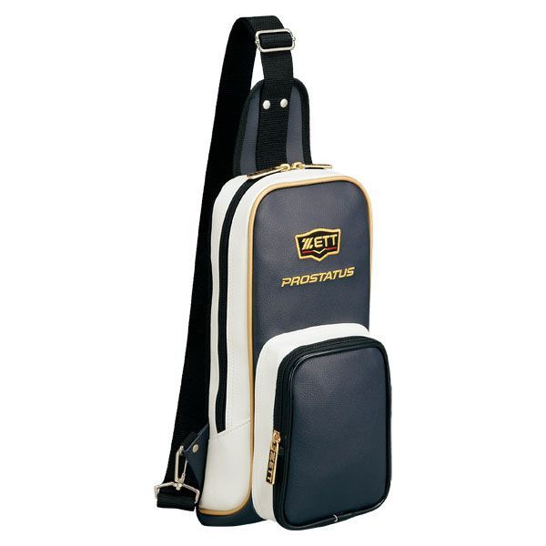 ゼット(ZETT) プロステイタス ボディバッグ 品番:BAP505A カラー:ダークネイビー×ホワイト(3011) 素材:合成皮革(PVC)、底部・背面/1680Dナイロン サイズ:長さ15×高さ35×巾6cm 容量:3L フロントポケット取り外し式