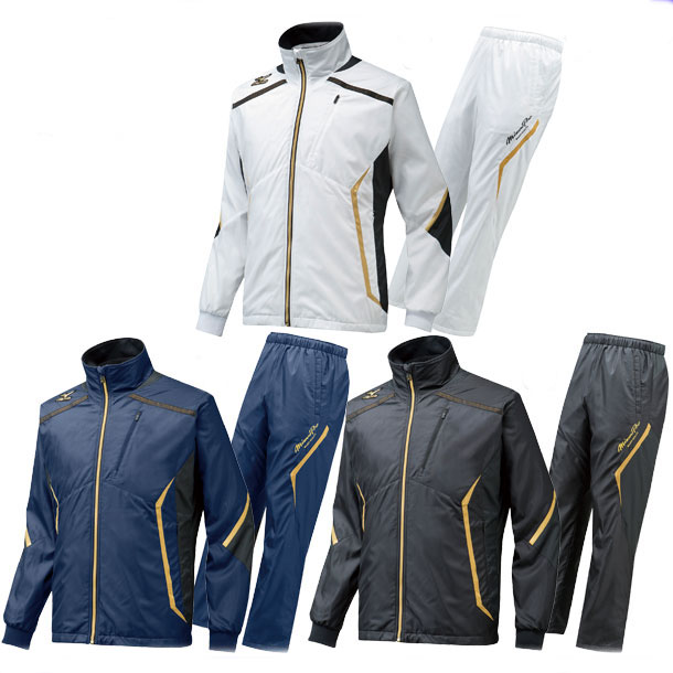 2015年秋冬モデル!ミズノプロ限定品。ミズプロらしさを追求した裏起毛ブレスサーモウィンドブレーカー、パンツ上下セット。 アンバサダーたちの厳しい要求に鍛えられ、理想のプレーを追い求めた動きやすさ。 素材や縫製へのこだわりが実現する堂々たるクオリティ。磨き抜かれた、まさに風格を感じさせる、「ミズノプロRライン」。