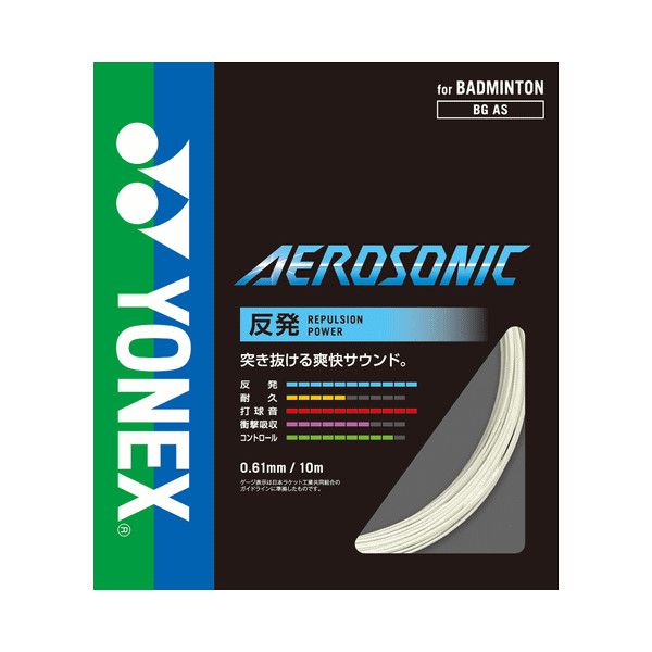 ヨネックス(YONEX) バドミントン ロールガット100m エアロソニック BGAS-1 品番:BGAS-1 カラー:ホワイト(011) 素材:芯糸:高強度ナイロン 側糸:ハイポリマーナイロン(ブレーディング加工) ゲージ:0.61mm 構造:マルチフィラメント コンパクトフィルド構造 長さ:100m