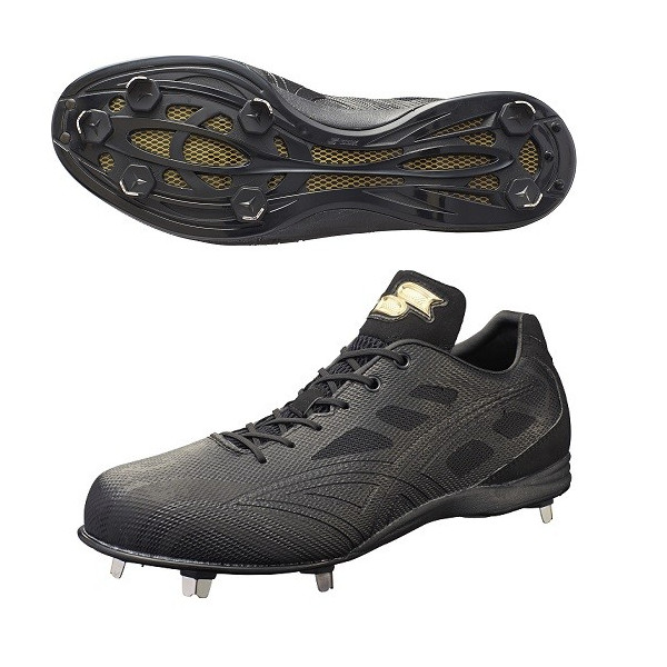 品番:ENSL6120 カラー:ブラック×ブラック サイズ:25.0cm〜29.0、30.0cm アッパー素材:人工皮革製(合成繊維) ソール素材:合成樹脂 スパイク:金属製・固定式 生産国:ベトナム製