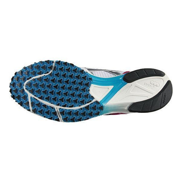 蹴り出す方向へ優れたグリップ力を発揮するデュオソール意匠を採用。中足部から前足部にかけては、安定性と反発性に優れたプロパルションプレートを搭載し、走行効率を向上。履き口にはスエード調の素材を採用し、足首周りのホールド性とフィット性を実現。