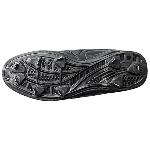 品番:11GM1460 カラー:00:ブラック×ブラック サイズ:23.0〜29.0cm 甲材:人工皮革 アウトソール:合成革 ミッドソール:合成樹脂(熱成型E.V.A.スポンジ) スパイク:金属金属製(新9本歯金具固定式) 原産国:中国製