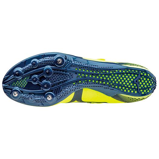 品番:U1GA1512 カラー:44:フラッシュイエロー×ネイビー サイズ:22.0〜30.0cm 質量:160g(26.0cm片方) 甲材:合成繊維、人工皮革 底材:合成底 スパイクピン:8ZA-303(8mm)、固定式(6mm、4mm) 競技種目:100〜400m、ハードル 競技場:オールウェザートラック専用 仕様:GEO PLATE Type-SL(SPRINT LONG PLATE )、セミラウンドソール、スプリントラスト 付属品:シューズ袋(中国製)付 原産国:中国製