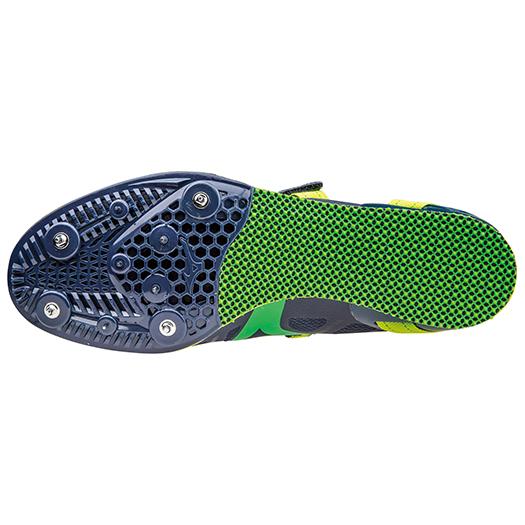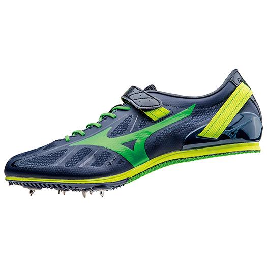 品番:U1GA1513 カラー:39:ネイビー×グリーン サイズ:23.0〜28.5cm 質量:170g(26.0cm片方) 甲材:合成繊維、人工皮革 底材:合成底 スパイクピン:8ZA-303(7mm)、固定式(6mm、4mm) 競技種目:200〜800m、ハードル用 競技場:オールウェザートラック専用 仕様:GEO PLATE Type-SS(SPRINT SHORT PLATE )、フラットソール、スプリントラスト、メッシュシャークソール 付属品:シューズ袋(中国製)付 原産国:中国製