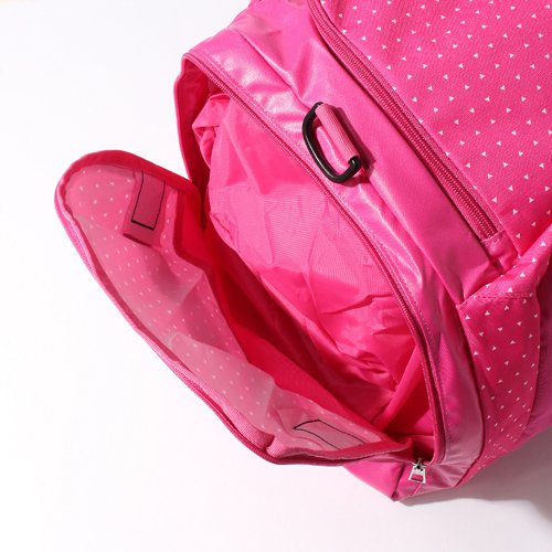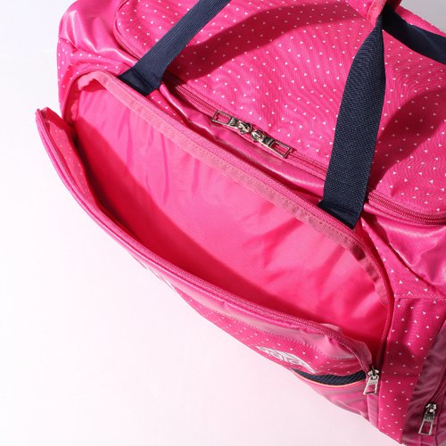 品番:KBQ40 カラー:A08204:ピンク×ホワイト サイズ:NS:30×53.5×27.5cm ショルダー全長:89〜105cm 容量:約75L 素材:ポリエステル900D(PUコーティング)+ポリエステル600D 機能:消臭、抗菌効果、デオドラントネーム 生産国:ベトナム製