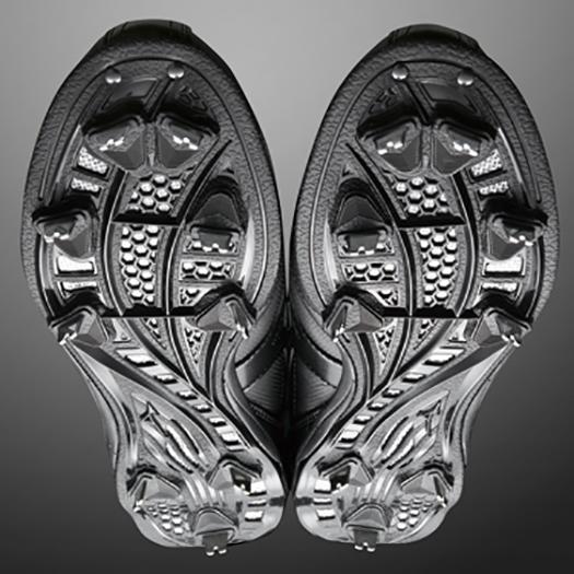 【SFソール】 必要な剛性を保ちつつ、可能な限り使用樹脂を少なくする事によって、更なる軽量性を実現。また9本歯形状を踏襲した形で、屈曲性向上を実現するために前足部の歯の配置を修正し、更なる柔らかい屈曲性と軽量性を実現しました。 【軽量パターン】 保型性を保ちながら、最小限のパーツで作成することにより、更なる軽量性を実現。今までにないこの軽さが、より高いパフォーマンスを生み出します。 【HDメタル】 (底金具)従来の金具に比べ、金具の硬度を高めることにより、耐摩耗性を向上させています。