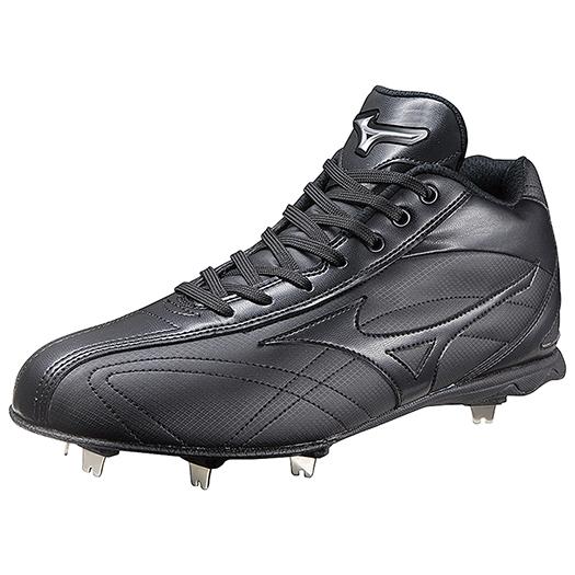 品番:11GM1430 カラー:00:ブラック×ブラック サイズ:25.0〜29.0cm 甲材:人工皮革 補強:人工皮革 底材:合成底 ミッドソール:合成樹脂(熱成型E.V.A.スポンジ) スパイク:金属製(新9本歯金具固定式) 原産国:中国製