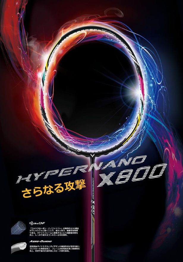 ビクター(VICTOR) バドミントンラケット ハイパーナノX800 品番:HX-800 サイズ:4UG5 全長:675mm サイズ:4UG5 推奨張力 :4U:19〜26(lbs) フレーム素材:超高弾力性カーボン+ウルトラカーボンナノファイバー シャフト素材:超高弾力性カーボン+6.8シャフト+PYROFIL BY MITSUBISHI ソフトケース付き 日本バドミントン協会検定合格品 原産国:台湾製