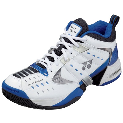 品番:SHT176W カラー:116:ホワイト×ロイヤルブルー サイズ:22.0〜29.0cm アッパー:人工皮革 ミッドソール:合成樹脂 アウトソール:ゴム底 詳細:ミッドカット、4E設計 対象コート:オムニ、クレーコート用 原産国:中国製