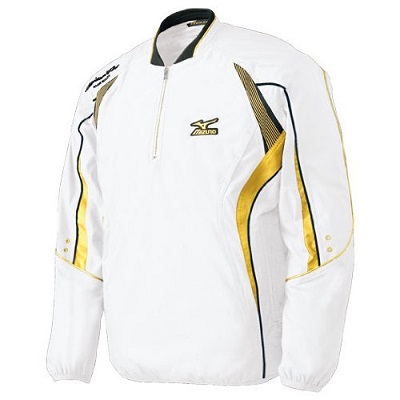 品番:12JE4J50 カラー:01:ホワイト×ゴールド サイズ:S、M、L、O、XO、2XO 素材:ポリエステル100% フライス:ポリエステル95%、ポリウレタン5% 詳細:背中、右脇にミズノプロロゴ刺繍入り 生産国:中国製